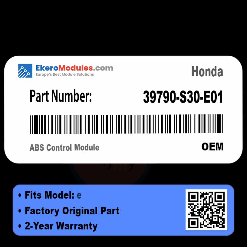 This plug-and-play 39790-S30-E01 ABS Control Module includes a 2 year warranty.