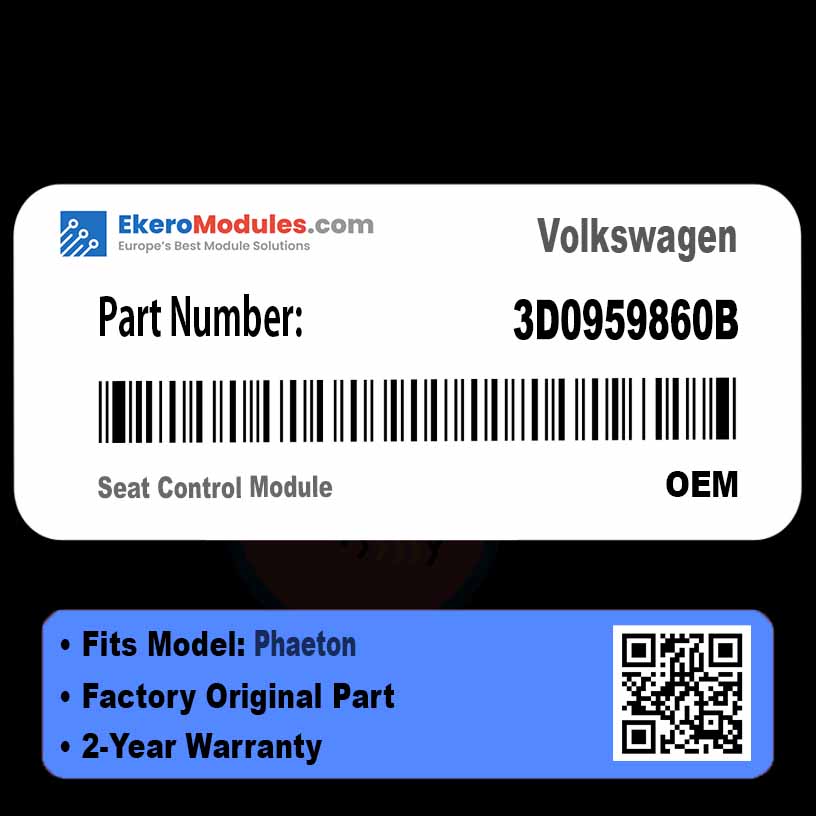 This 3D0959860B Seat Control Module includes a 2 year warranty.