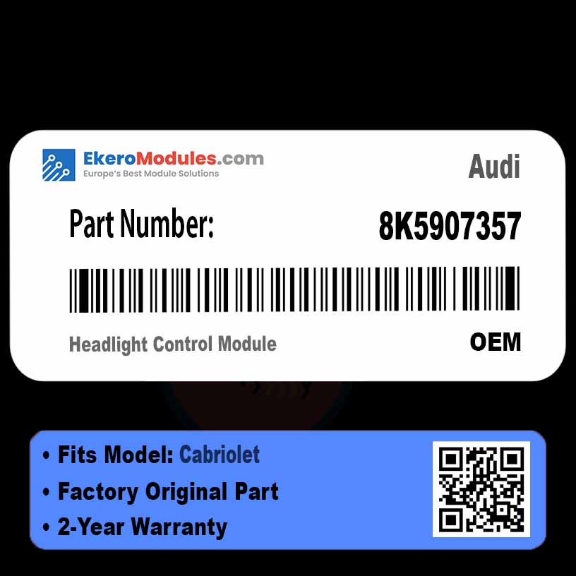This 8K5907357 Headlight Control Module includes a 2 year warranty.