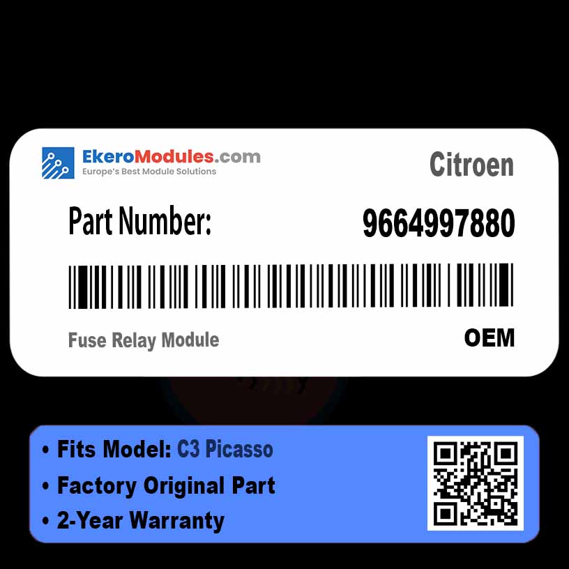 This 9664997880 Fuse Relay Module includes a 2 year warranty.