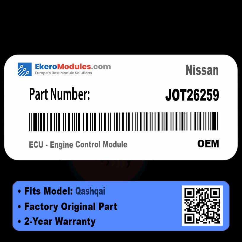 This JOT26259 ECU – Engine Control Module includes a 2 year warranty.